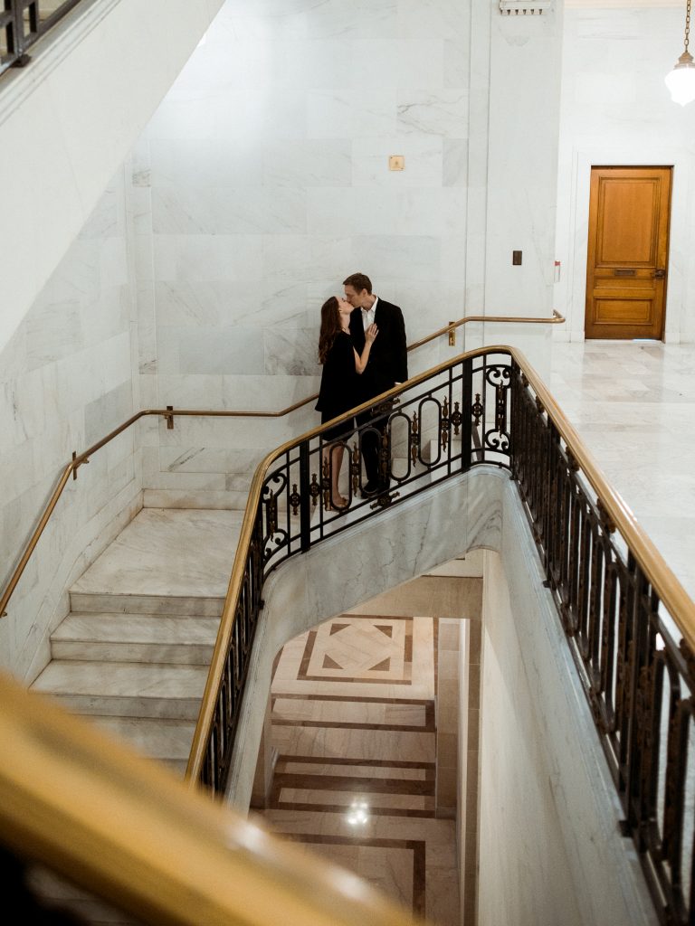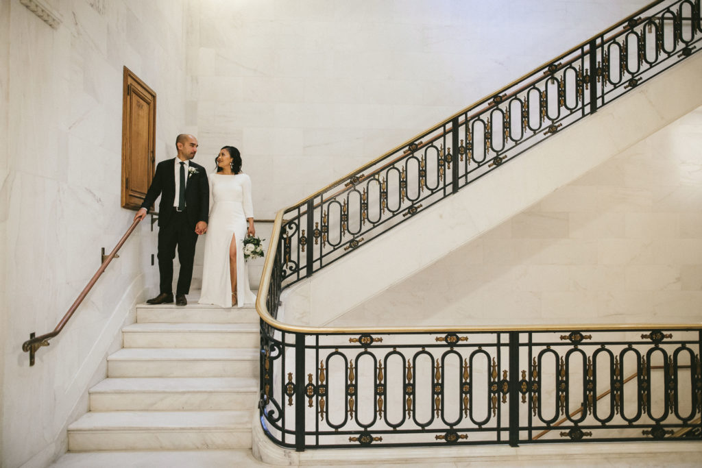 Once you sign your marriage license and meet the judge who will officiate your wedding, we will have a few minutes to take photos before your ceremony. Once the five-minute ceremony is over, I will typically take the opportunity to do family photos, followed by couples’ photos. During the couples’ portrait time, we can take a tour of the building and shoot at all of my favorite locations throughout the building and have a great time along the way. I’m practically an unofficial tour guide at this point :)